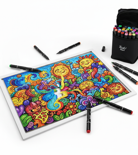 Kit Quebra cabeças personalizado e canetinhas 30 cores